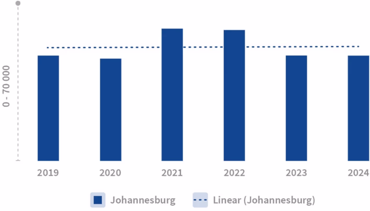 Johannesburg's residential property market has experienced mixed fortunes over the past six years. Sales volumes have generally been on a decline since 2019, although there was a noticeable uptick in 2024 compared to 2023.