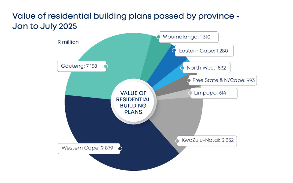The Western Cape continues to dominate South Africa’s housing landscape, capturing 38% of the total value of new residential building plans passed so far this year. Between January and July, the country recorded R26 billion worth of building plans, and despite a slight national dip, the Western Cape stands out as the clear outperformer.